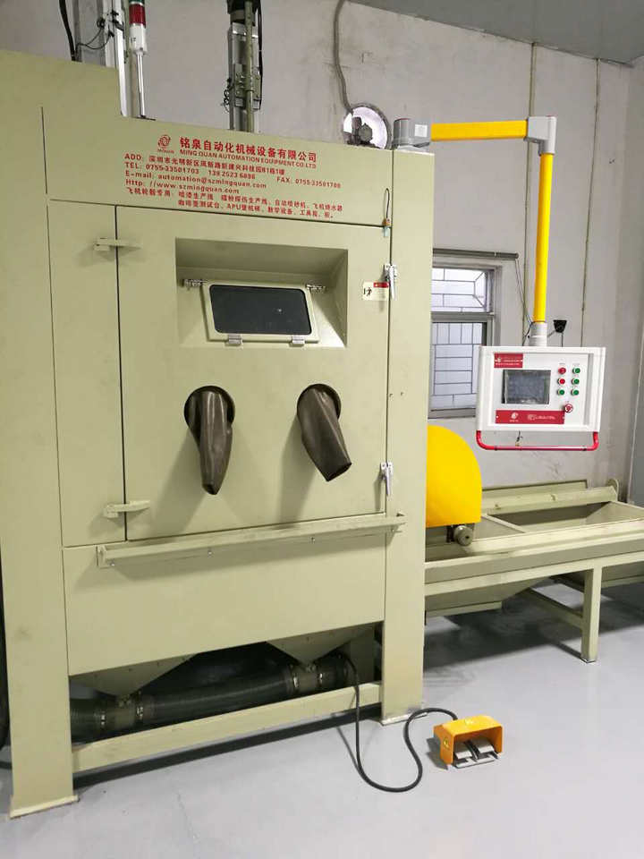 機(jī)器特性:X-Y人性化設(shè)計(jì),大容量觸摸屏可儲存100組以上程式,采用三菱伺服系統(tǒng)、PLC,編程簡單快捷,設(shè)有快速報(bào)警查詢,快速閱覽處理誤操作及機(jī)器故障等人性化設(shè)計(jì)。所有電器采用進(jìn)口品牌。增壓噴砂(50psi)回收系統(tǒng)采用內(nèi)循環(huán)無污染。臺車自動進(jìn)出噴砂倉省時省力